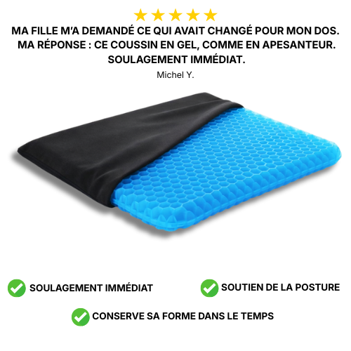 Le coussin en gel Assiva aide à mieux répartir la pression en position assise. La sensation de brûlure diminue, les engourdissements se font moins présents, et l’assise redevient plus agréable.